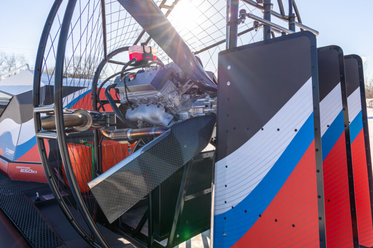 В конструкции используется мощный моторный двигатель, обеспечивающий высокую скорость и манёвренность. Давление в воздушной подушке оптимизировано для плавного передвижения по воде, снегу и болотистой местности. Дополнительные аксессуары, такие как фары, мягкий тент и комплект ходового оборудования, делают аэролодку особенно удобной для различных задач.