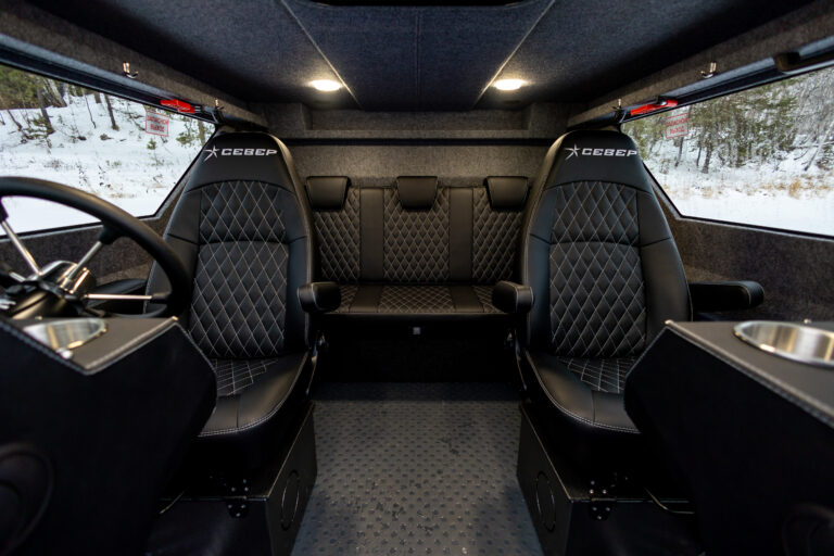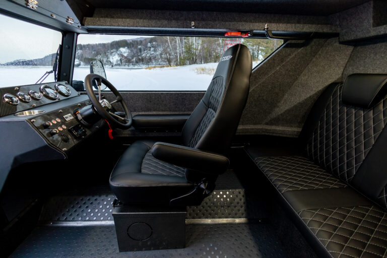 В салоне аэролодки легко можно разместить до 5 человек, удобные сиденья трансформируются в спальное место