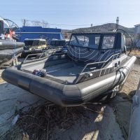 Съемный ходовой тент с панорамными окнами надежно защищает от непогоды. Модель может быть оборудована еще двумя тентами: для защиты груза на передней платформе и стояночным тентом-палаткой, который полностью накрывает носовую часть лодки.