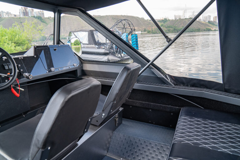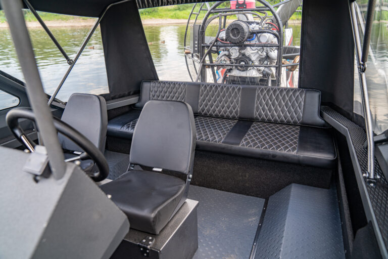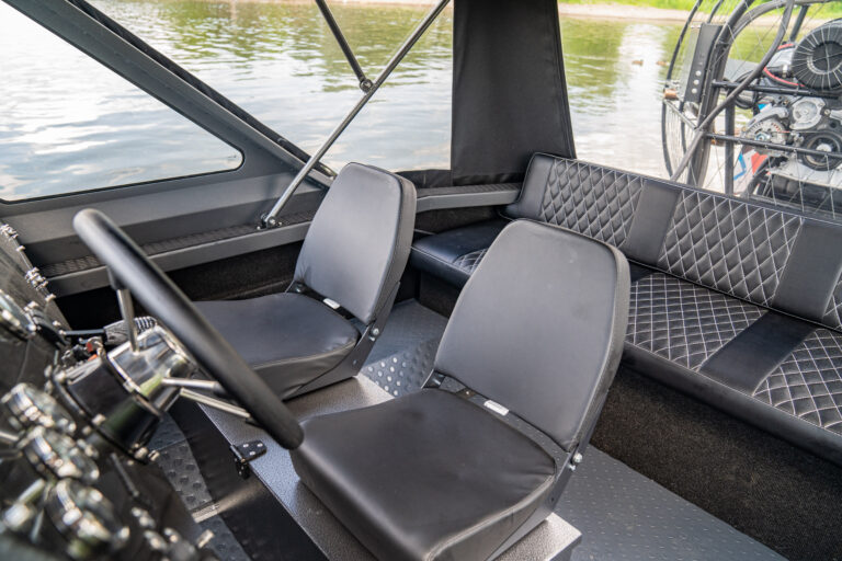 В салоне аэролодки легко можно разместить до 5 человек, удобные сиденья трансформируются в спальное место