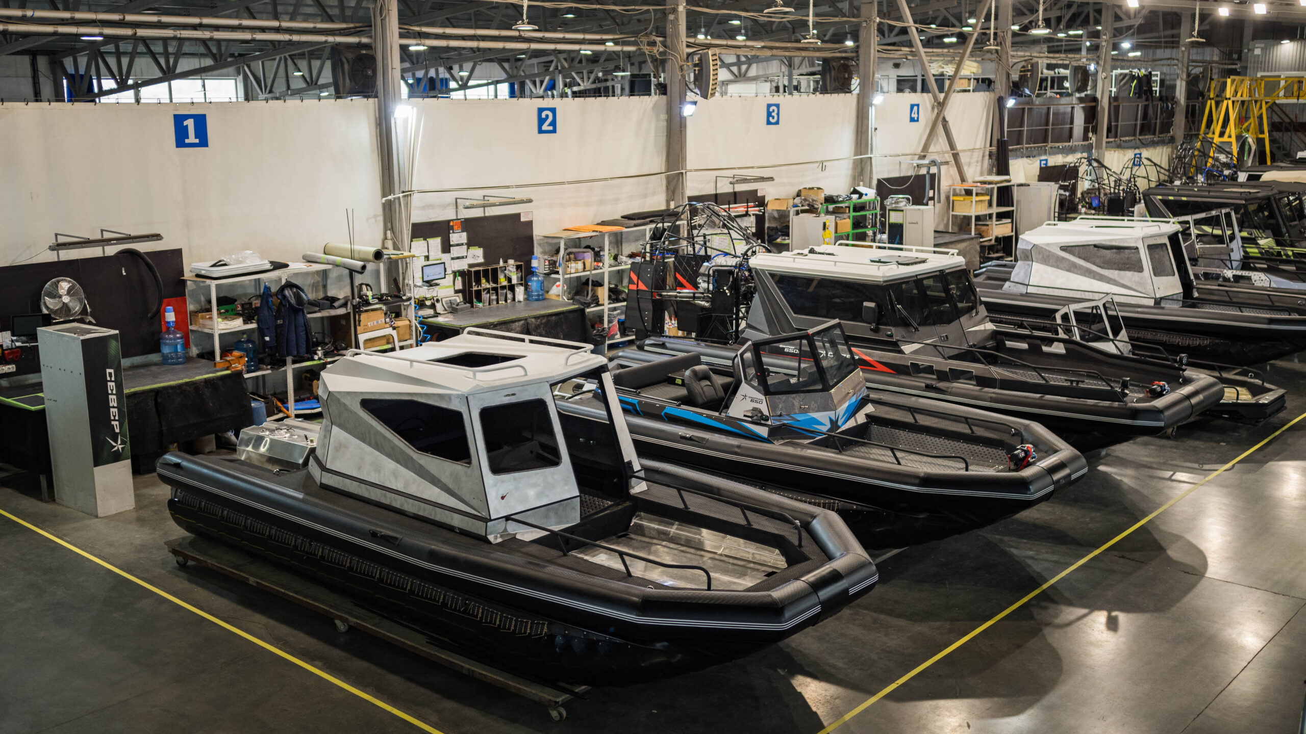 В отличие от автомобильного завода, где соединение различных деталей и узлов будущей машины происходит на сборочном конвейере, на мелкосерийном производстве аэролодок КАЗ «Север» применяется технология стендовой сборки. Похожие методы организации производства используются при сборке болидов Формулы-1 или мелкосерийных суперкаров, таких как Aston Martin. А еще при строительстве судов на стапелях. Кстати, стенды, на которых происходит сборка аэролодок «Север», также называют стапелями.