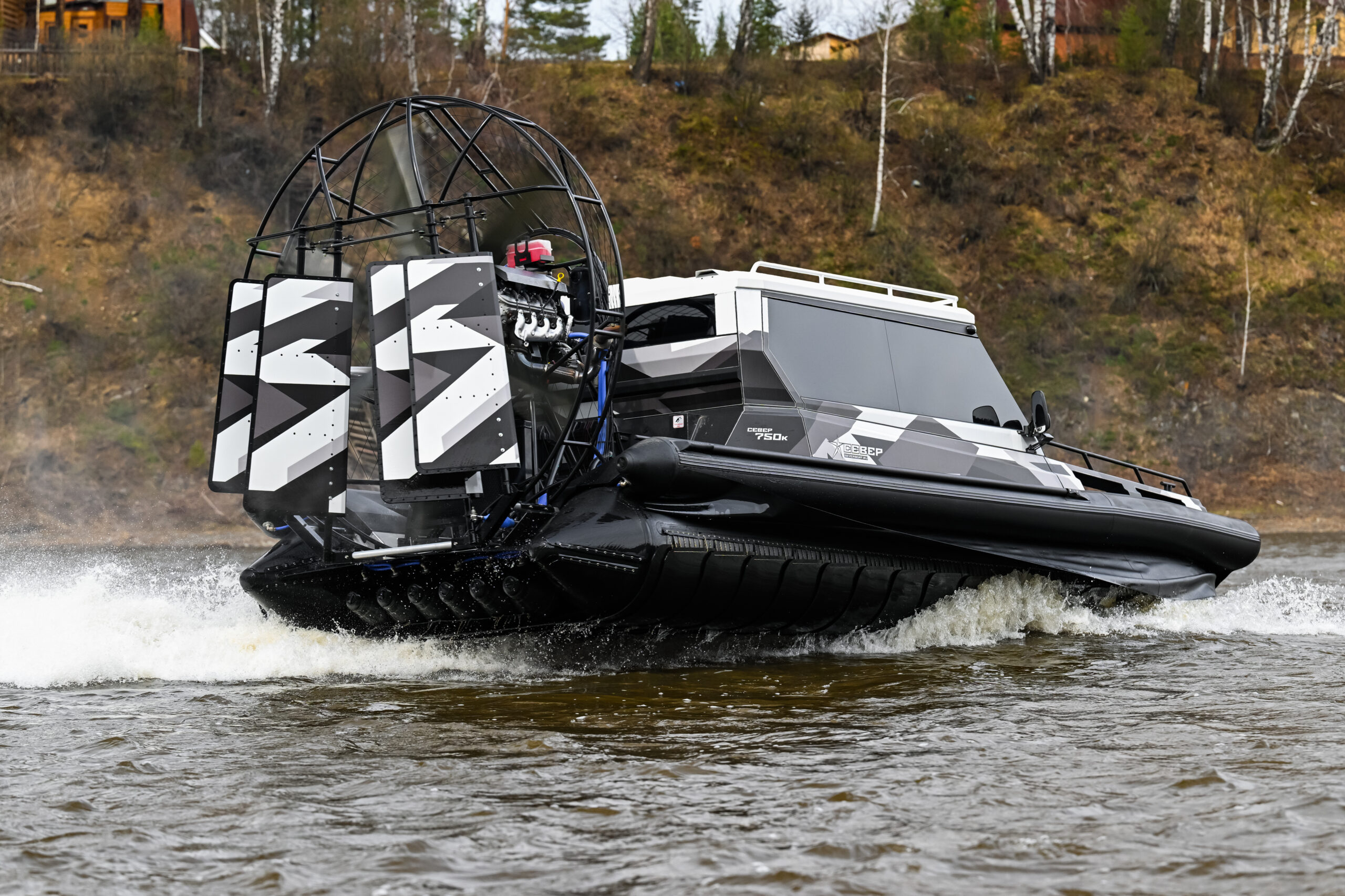 Поэтому мы продолжили поиски и после множества испытаний нашли оптимальное решение — поликерамопласт PE-500 толщиной 5–6 мм, который сейчас мы устанавливаем на всех модели. Чешуя из этого материала сочетает феноменальную прочность, эластичность и скользящие свойства, она позволяет аэролодке «перетекать» через препятствия, подобно змее, минимизируя воздействие ударных нагрузок на корпус.
