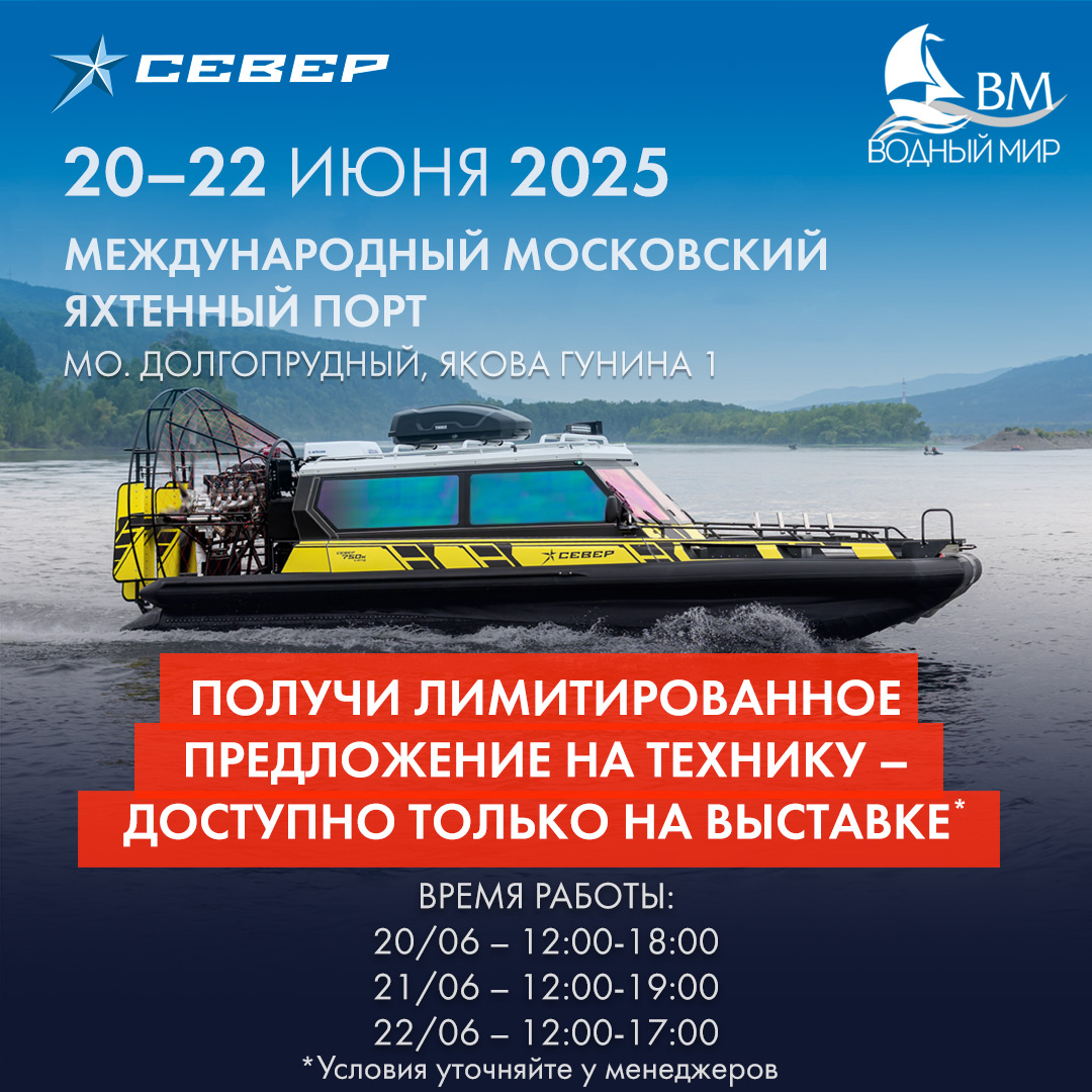Летом в Москве пройдут две крупные выставки водной техники, и мы приглашаем вас познакомиться с нашими флагманскими аэролодками и уникальными предложениями — только на выставке!